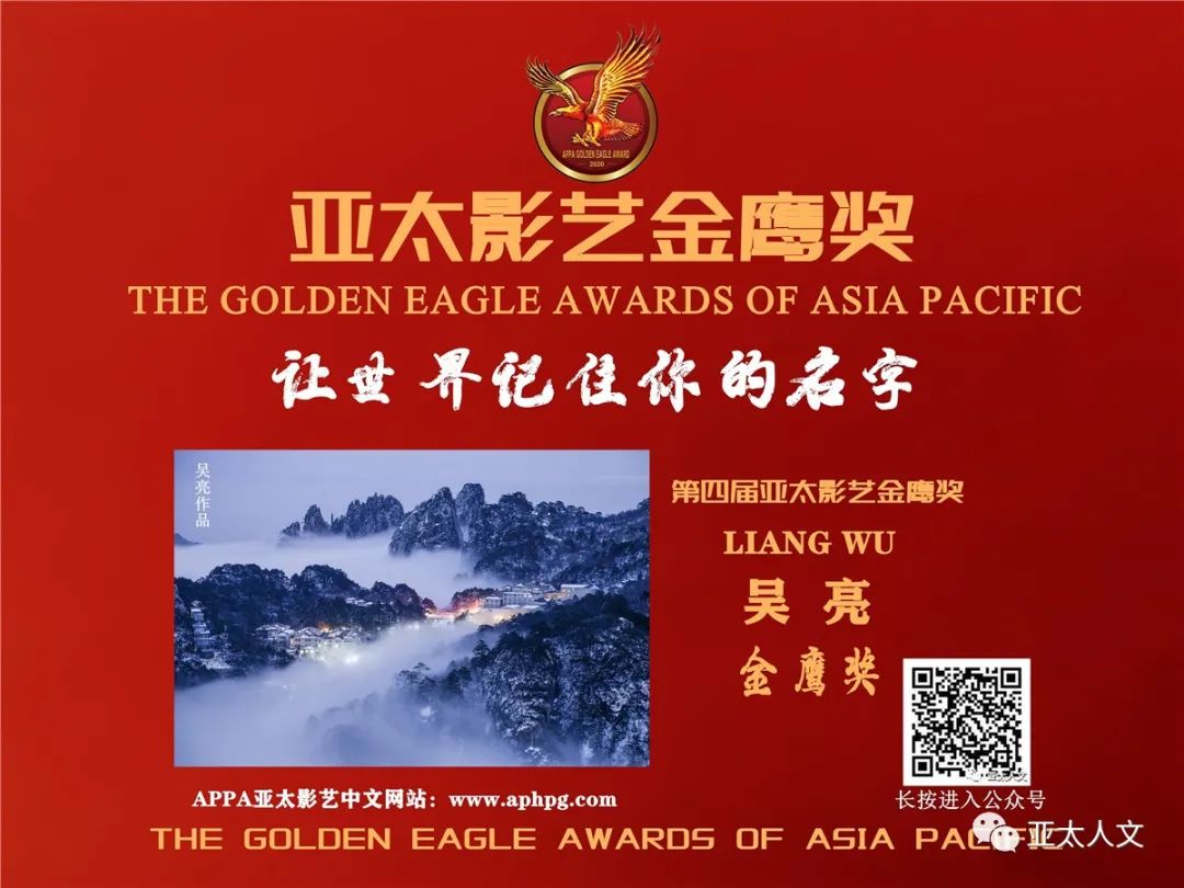 据悉,第四届亚太影艺金鹰奖系从申报者中根据其艺术成就和在各类国际摄影赛事中所取得的奖项以及在APPA亚太影艺举办的展览活动中的积分成绩而进行评审的,在评审过程中受疫情影响,数次更改原定颁奖日期和现场评定地点,各国评委网视连线十几次,历时达半年之久。”